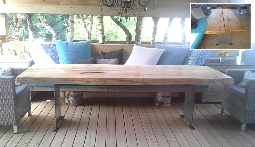 ... auch mit rustikaler Holzplatte